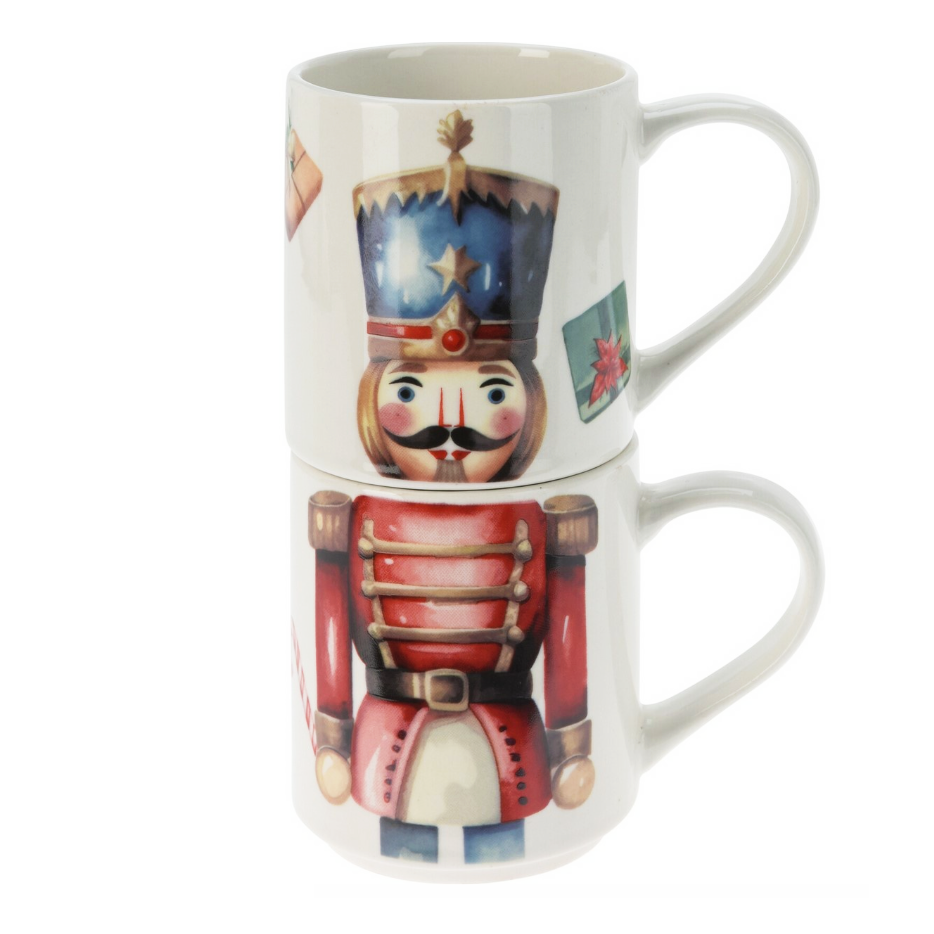 Set 2 Cani din Portelan Decorate cu Motive de Craciun 265ml - Spargatorul de Nuci