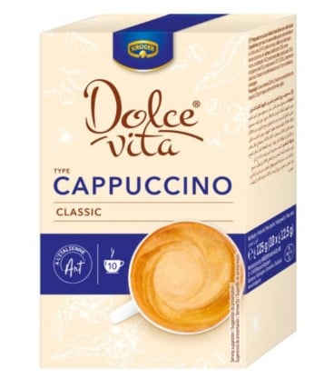 KRUGER Cappuccino Classic 10x12.5g este alegerea ideală pentru iubitorii de cafea care vor un cappuccino cremos, cu spumă densă, disponibil rapid și la un preț accesibil.