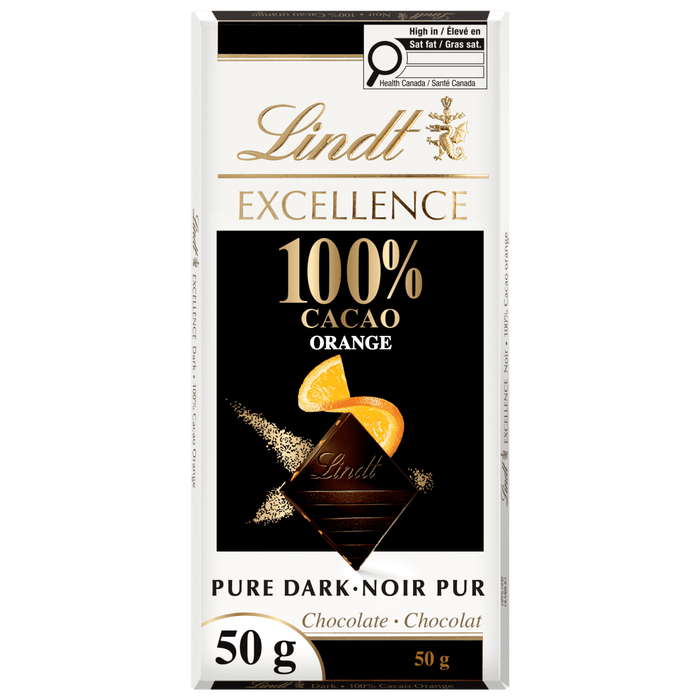 Experimentați aroma ciocolatei negre pure și catifelate cu batonul de ciocolată neagră Lindt EXCELLENCE 100% cacao și portocală.