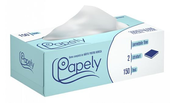 Servetelele faciale pop - up PAPELY sunt realizate din celuloza 100%, au 2 straturi si dimensiunile 21 x 21 cm.