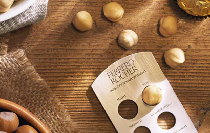 Fiecare Ferrero Rocher este creat cu pasiune si angajament. Alegem o aluna de padure intreaga, o scufundam intr-o umplutura fina si catifelata, o imbracam in ciocolata cu lapte si o acoperim cu bucati de alune de padure pentru a va oferi o experienta a gustului irezistibila.