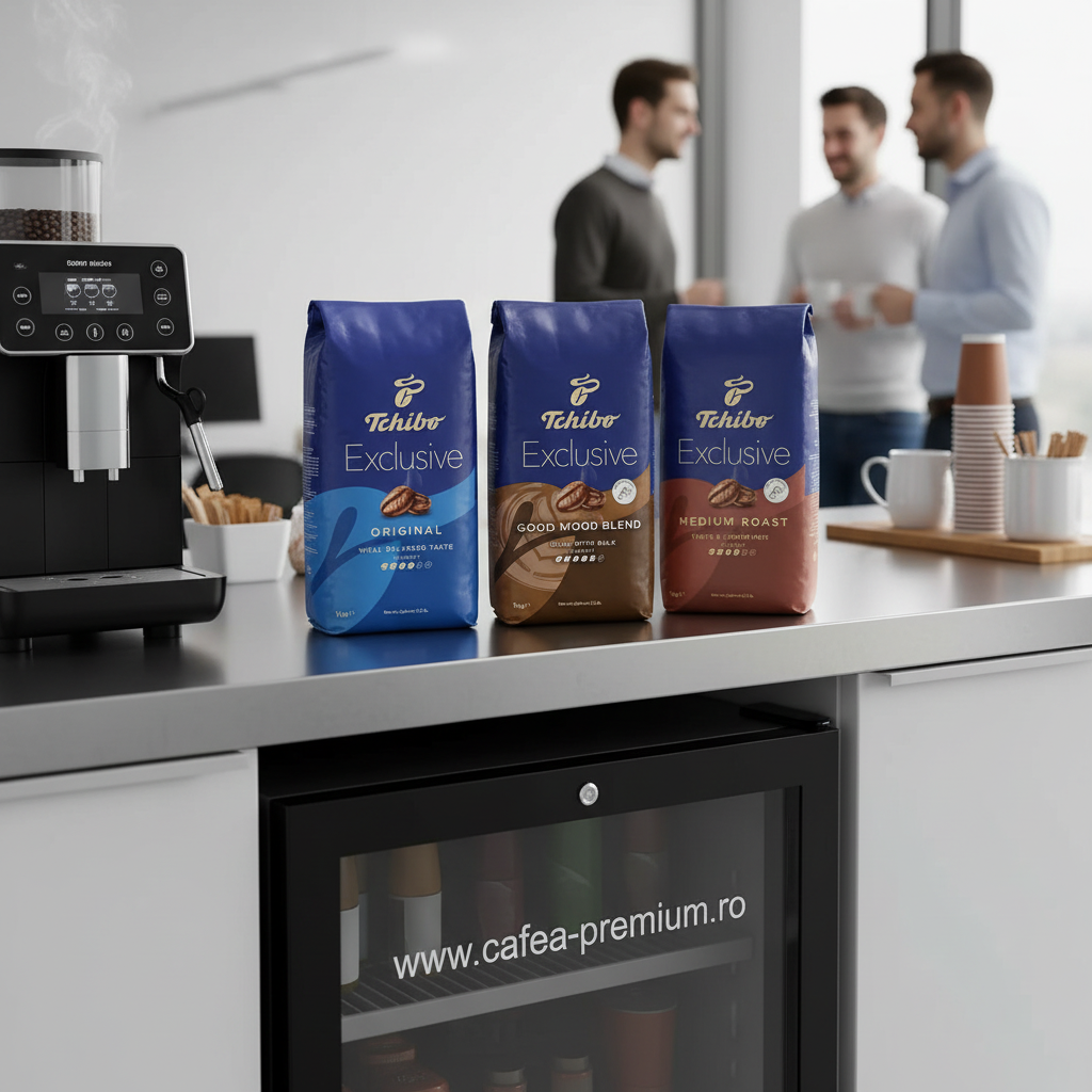 Tchibo Exclusive Medium Roast – corp mediu, aromă intensă, ușor prăjită, perfectă pentru cei care preferă un gust rotund și armonios.